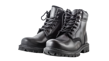 Stylish black leather combat boots with laceup detail.  Perfect for fashion, lifestyle, or ecommerce websites.  Conveys strength, individuality, and a rebellious spirit.