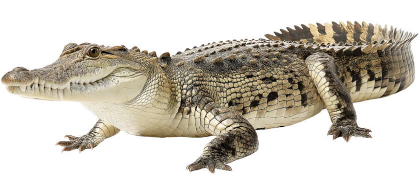 Ultra‑high‑resolution full‑body crocodile on isolated transparent PNG background for wildlife branding, educational posters, reptile research visuals, and e‑commerce design cutouts