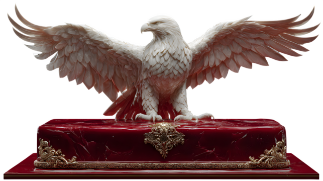 Ancient stone carving displays an eagle emblem with laurel wreath, transparent background