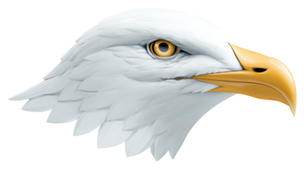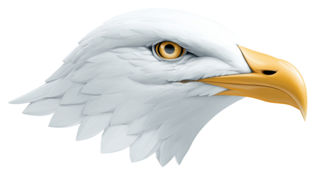 Bald eagle flying with wings spread, symbolizing freedom, patriotism, and strength on transparent background