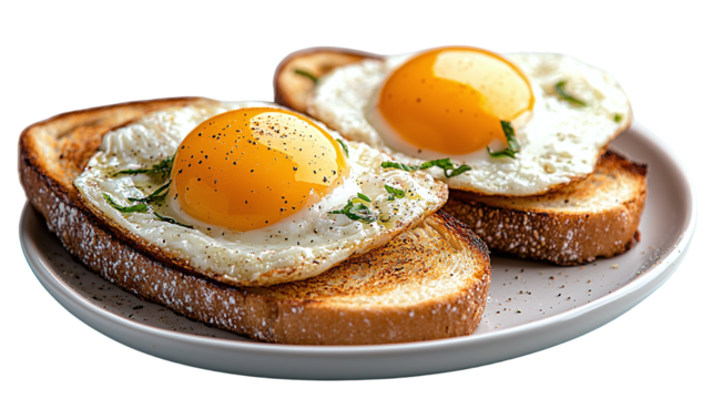 Two eggs perfectly placed on toasted bread creating a simple yet delicious breakfast option for early mornings