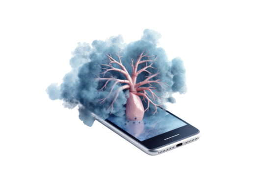 Transparent smartphone usage with coffee cup background