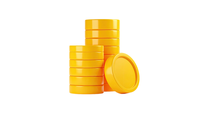 Stack of shiny gold coins isolated PNG, pile of money for wealth and finance concepts, on transparent background, golden currency for business