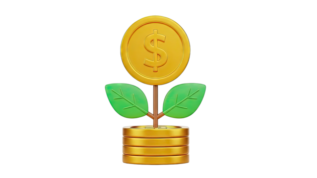 3D Rendering Golden Coins Stack for Financial Success on Transparent