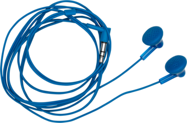 Blue earphones on transparent background for music and entertainment