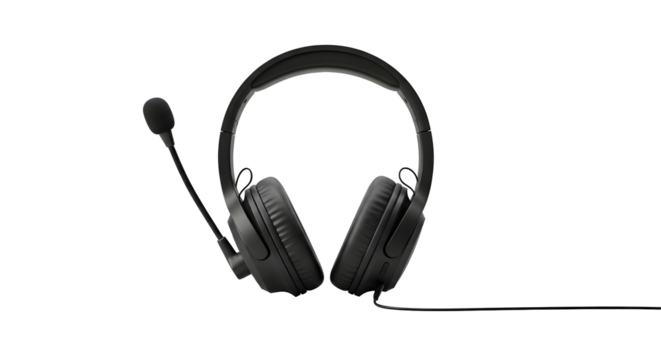 Black headphones with microphone isolated on transparent background