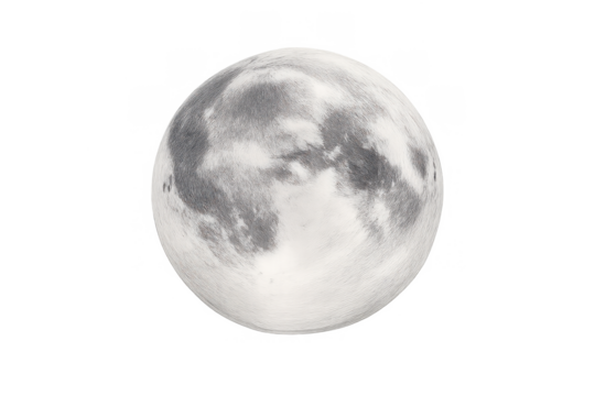 Full moon showing detailed lunar surface with craters and texture, celestial body orbiting earth on transparent background