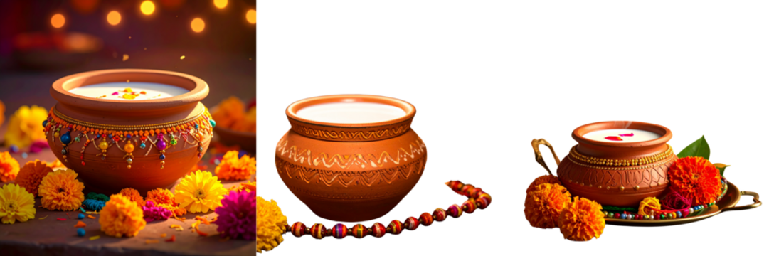 Set ofTraditional Earthen Pot Filled with Milk for Janmashtami Celebration