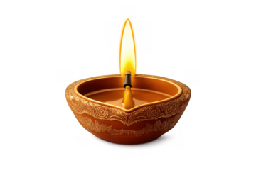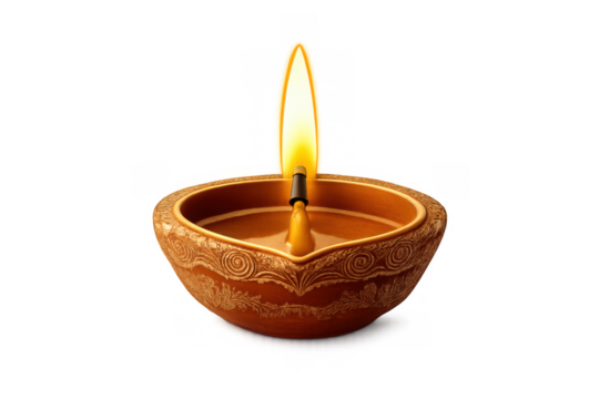 Diya oil lamp burning with sacred flame, symbolizing diwali festival, spirituality, tradition, and light on transparent background