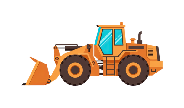 Yellow Wheel Loader Construction Vehicle With Blue Windows On Transparent Background