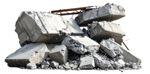 Transparent PNG available destroyed buildings after earthquake or world war, isolated on white background as transparent PNG