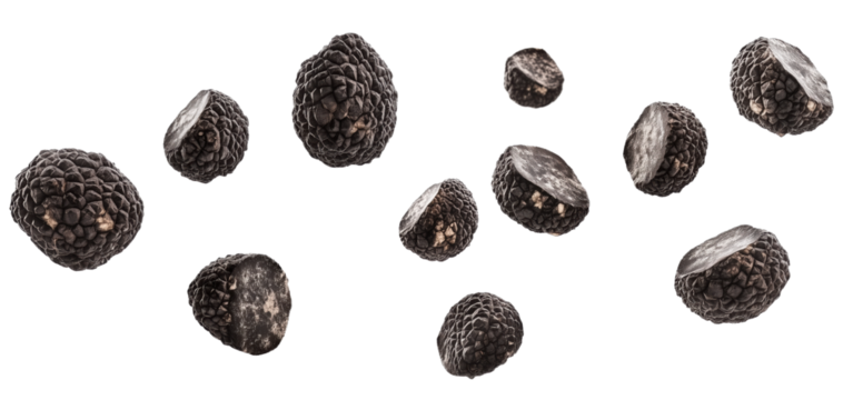 Premium black truffles, isolated on transparent background, perfect for menus