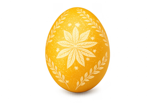 Yellow easter egg with folk art floral pattern