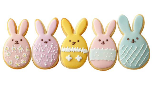 Digital transparent easter rabbits illustrating tradition