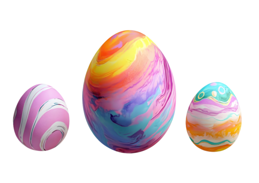 Colorful easter eggs with festive text on transparent background