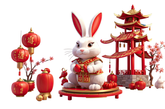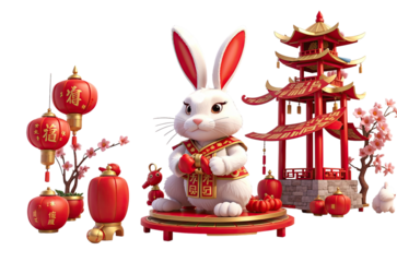 3D Animation Style Rabit Vector Chinese New Year Isolated on transparent background