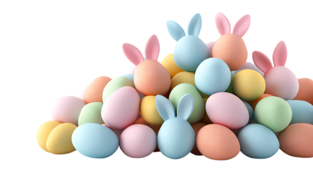 Transparent easter celebration with easter eggs and bunny ears