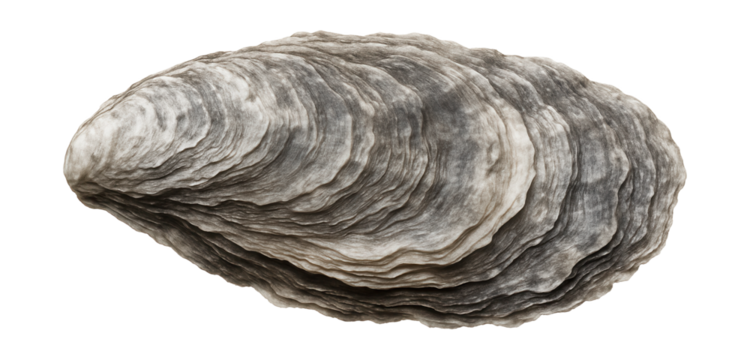Eastern oyster shell featuring layered, rough texture and gray-white coloring