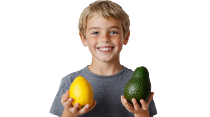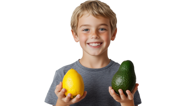 Smiling woman holding fresh avocado half transparent background