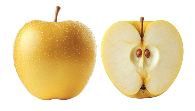 Vibrant red apple whole and halved revealing crisp juicy interior perfect for healthy eating and recipes, Isolated on white background
