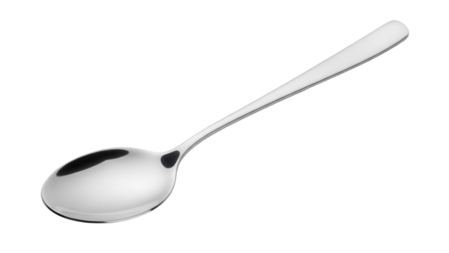 Shiny silver spoon isolated PNG on transparent background, elegant cutlery for dining and kitchen use, modern tableware design