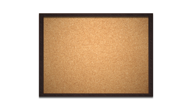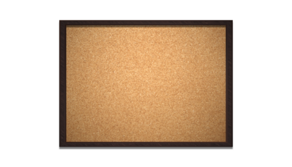 壁に掛けられたフレームがついたコルクボードの背景 木製の額縁 掲示板・お知らせ