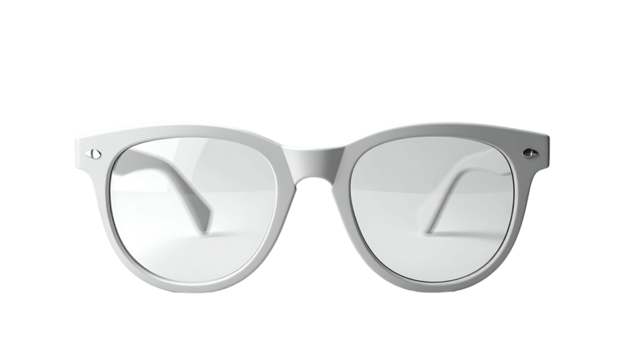Isolated eyeglasses with transparent frames, modern eyewear with clear lenses and rounded shape