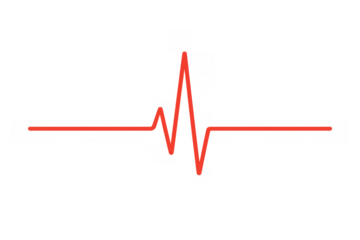 Red line tracing a human heart rhythm on a transparent background, representing a medical ekg or ecg signal and health