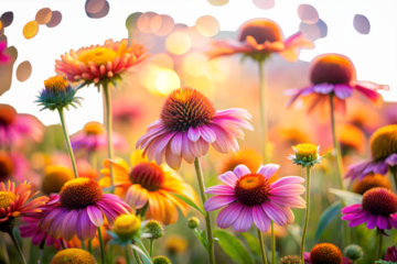 Vibrant echinacea flowers in soft sunlight isolated on white background