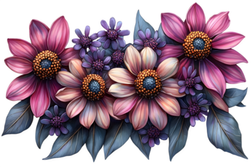 Cluster of echinacea blooms isolated on white background PNG, vibrant colors