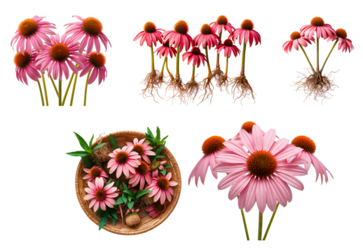 Echinacea flowers isolated on transparent background
