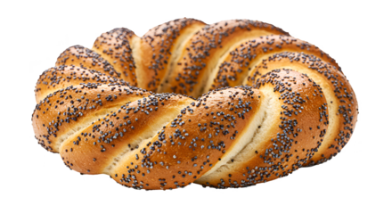 Isolated braided sweet bread with poppy seeds and sugar glaze