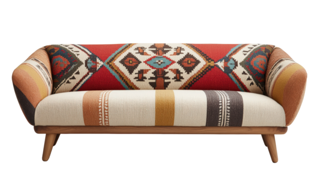 Vibrant patchwork chair exuding modern artistic flair in a stylish interior setting