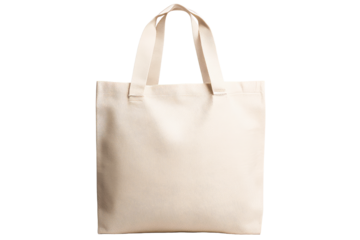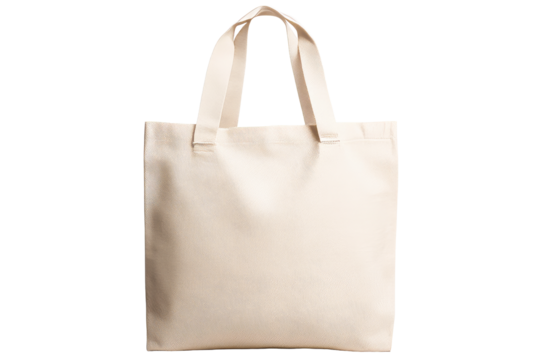 Two blank tote bags, one white and one black, with fabric handles on transparent background; concept for branding, packaging, and merchandise design