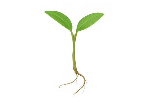 Small green seedling plant with roots emerging, representing new beginnings, healthy growth, and earth-friendly concepts, isolated