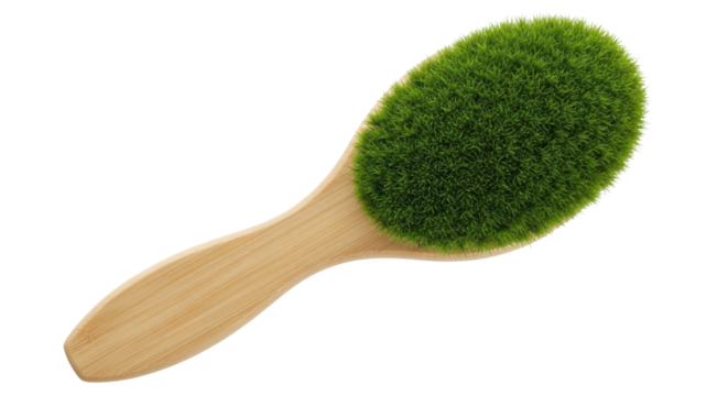 Oval moss brush PNG isolated on transparent background, eco-friendly cleaning tool for sustainable living and natural home care