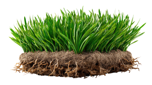 Green Grass and Root : The vibrant image of a lush patch of grass showcases a close-up view of the interwoven root system and the vibrant green blades.