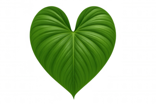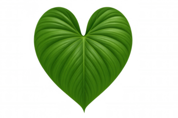 Green leaf forming a heart shape, symbolizing nature, love, environment, and ecological balance