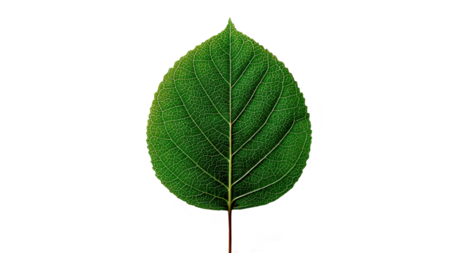 High quality image of a single leaf, with clearly visible veins, isolated on a transparent background. Suitable for ecological designs, botanical illustrations, nature decor and environmental projects
