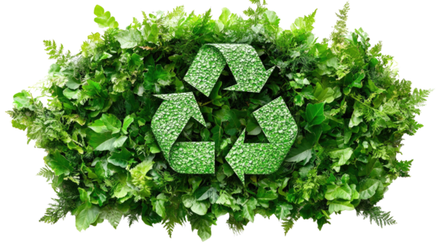 Eco-Friendly Symbol: A vibrant green recycling symbol made of leaves, conveying an eco-friendly message. This symbolic image highlights environmental awareness and sustainable living.