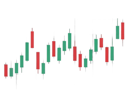 Candlestick chart showing financial market trends upward and downward movement of stock prices transparent background