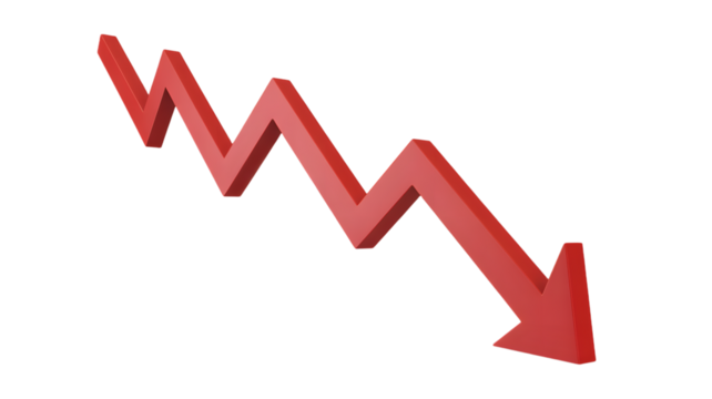 Declining trend graph with red arrow pointing downward sharply