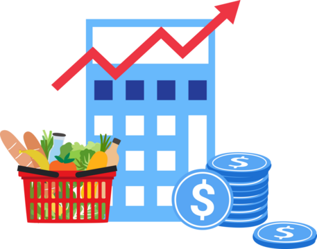 Food increase inflation. Collection of inflation, rising food cost, financial crisis.