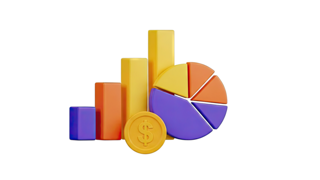 3D Bar and Pie Chart with Coin
