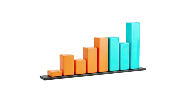Trendy transparent graph icons: vibrant arrows on futuristic grid