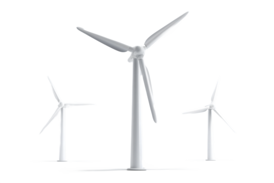 White Wind Turbines Isolated on White Background – Renewable Energy, Wind Power Generation, and Sustainable Technology Concept