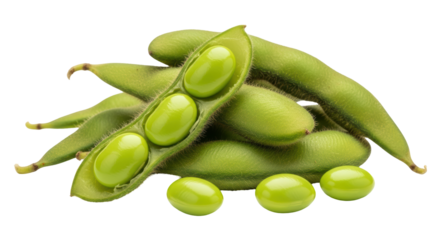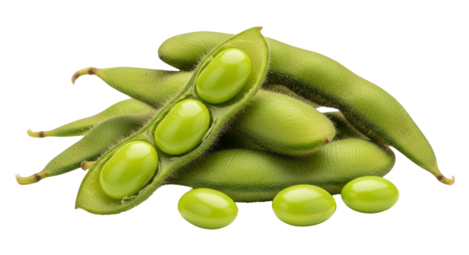 Fresh green edamame pods and beans isolated on transparent background