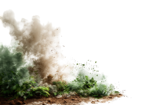 Explosive dirt cloud over foliage