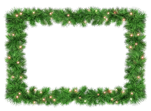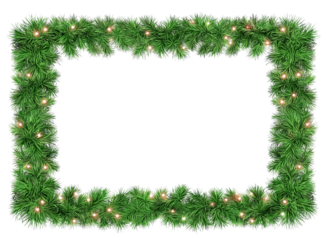 Seamless decorative christmas border with coniferous branches and garlands on transparent background, cutout