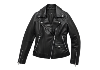 Stylish black leather jacket isolated on transparent background, a timeless piece for a chic and edgy look, perfect for any occasion and versatile for all seasons